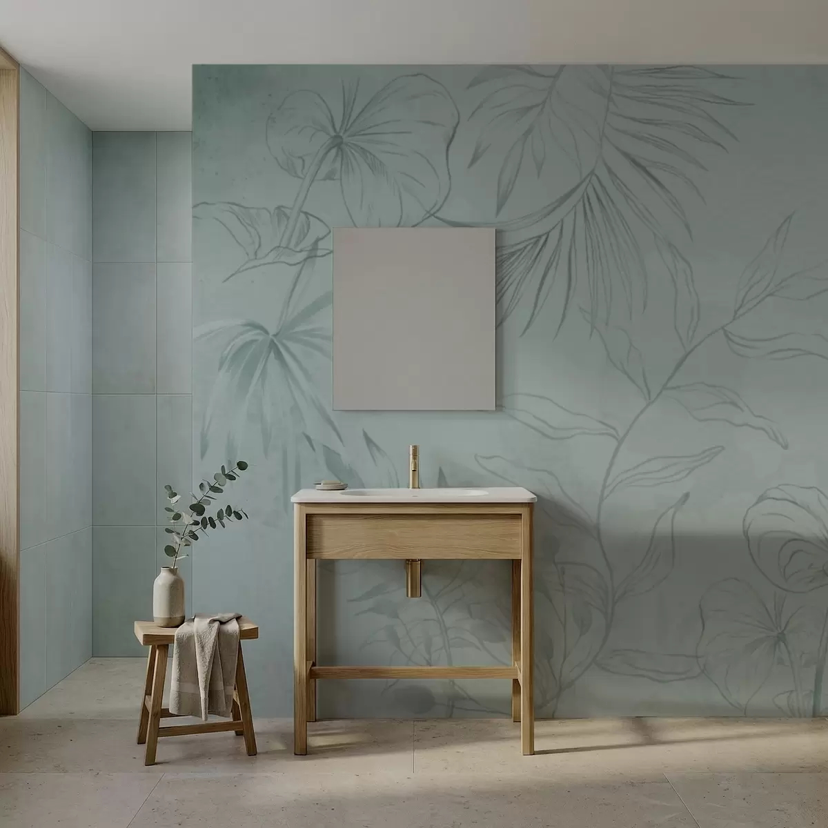Τοιχογραφίες Γραμμικά φυτά σε απαλό πρασινωπό φόντο Nr. w05128v1