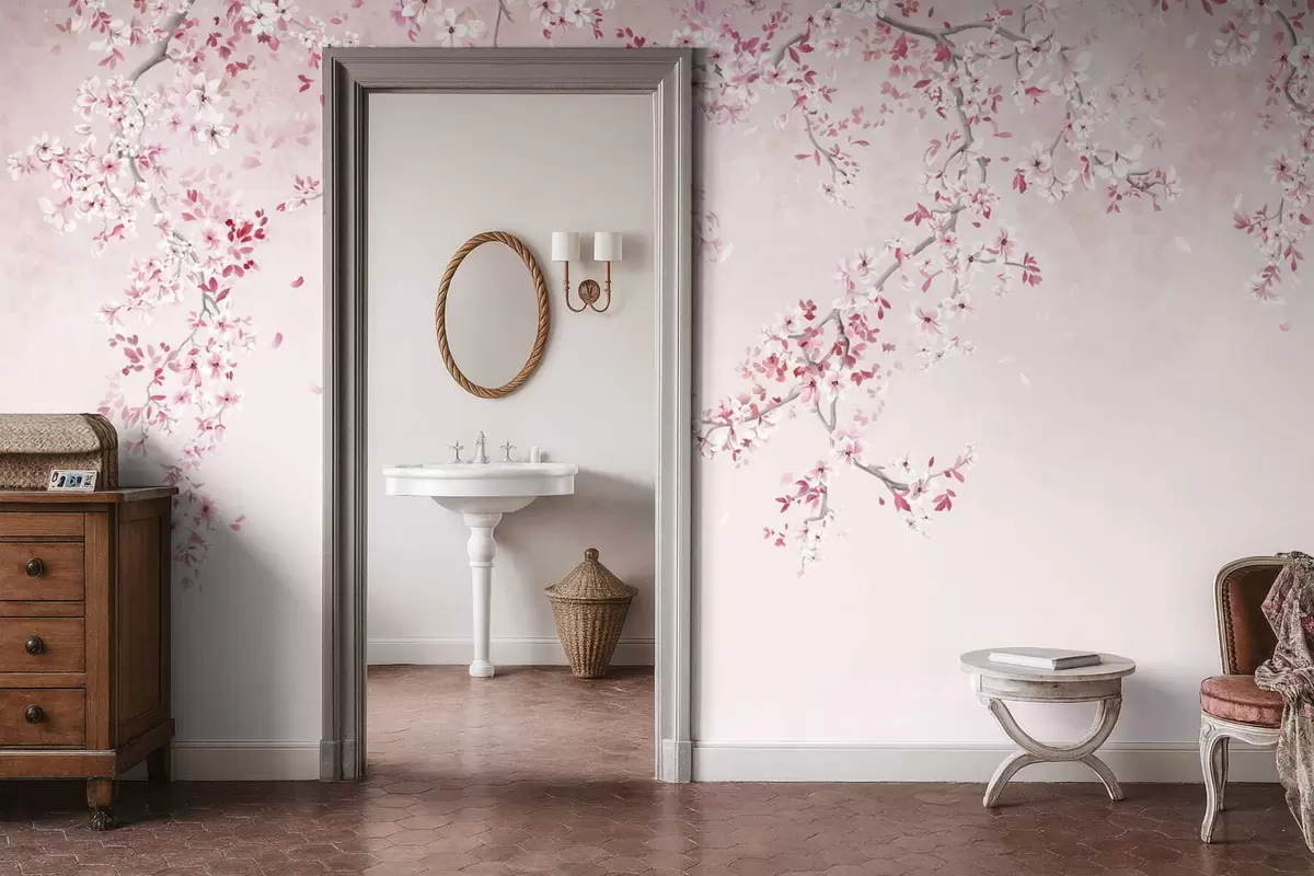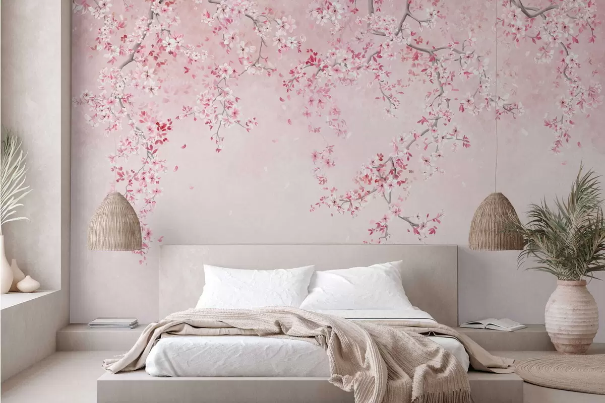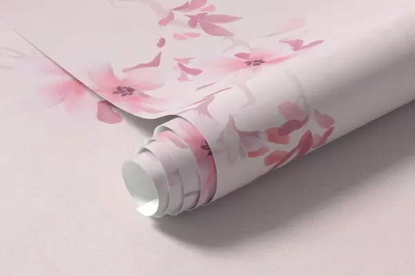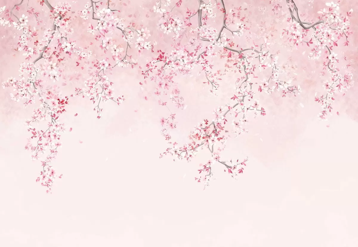 Τοιχογραφίες Κλαδιά με ροζ άνθη σε απαλό παστέλ φόντο Nr. w05129v1