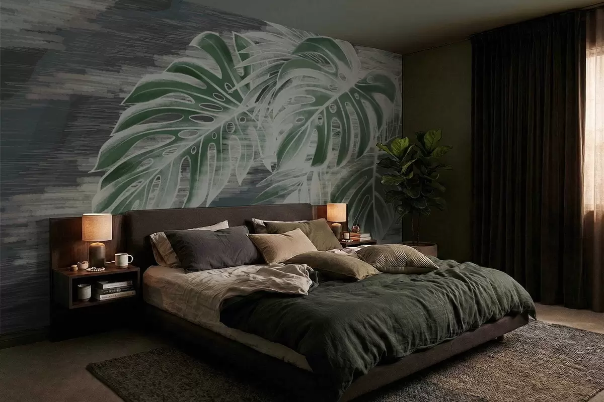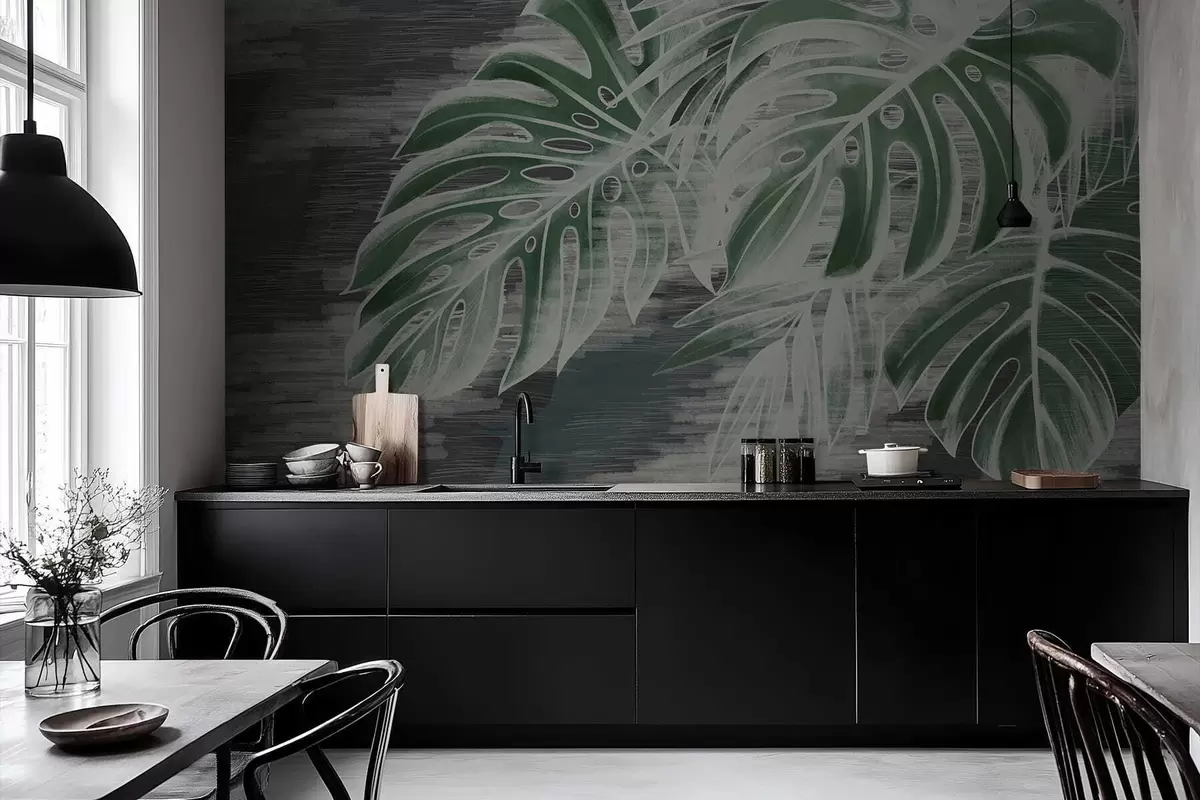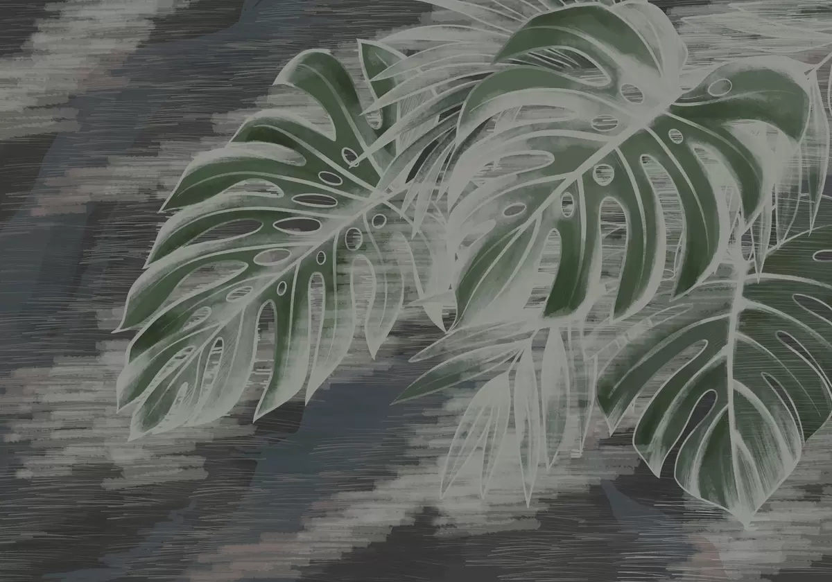 Τοιχογραφίες Σκούρα πράσινα φύλλα σε σκούρο φόντο με υφή Nr. w05130v4