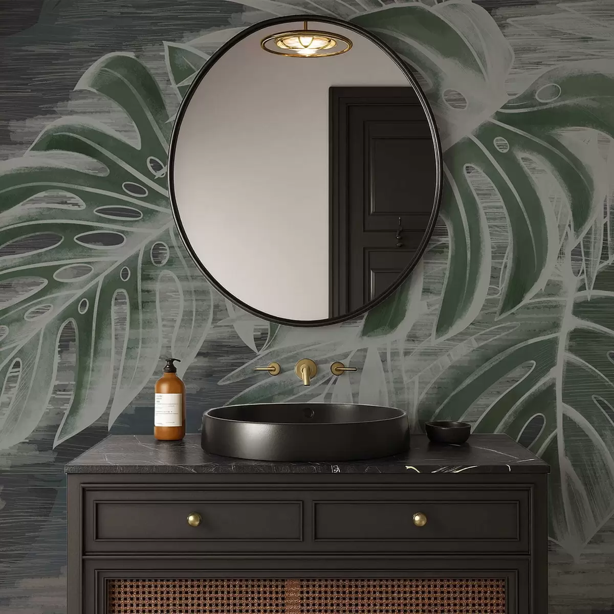 τοιχογραφίες Σκούρα πράσινα φύλλα σε σκούρο φόντο με υφή w05130v4