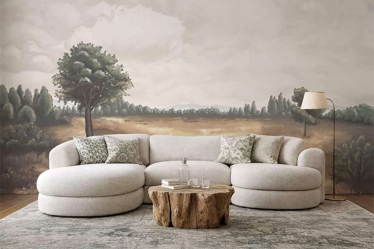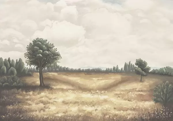 Τοιχογραφίες Ζωγραφισμένο τοπίο με δέντρα και ανοιχτό χωράφι Nr. w05131
