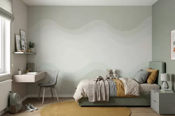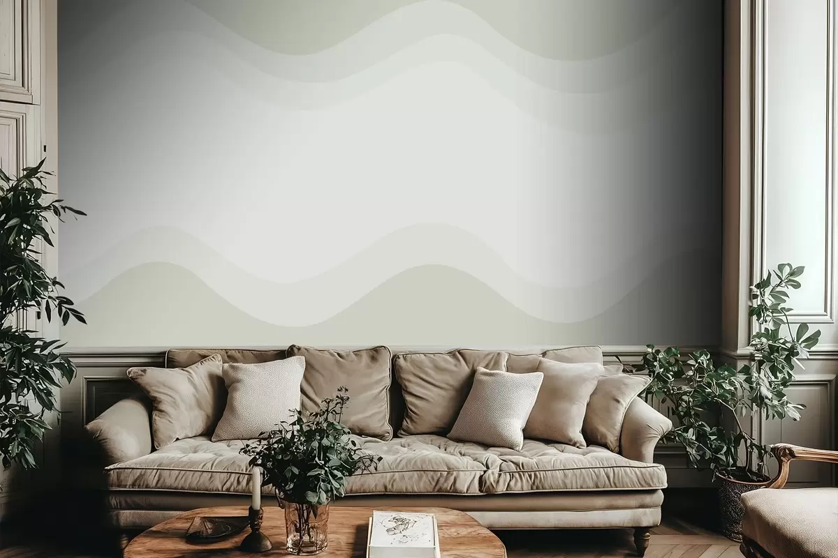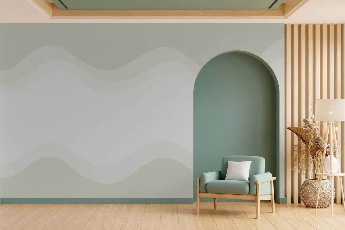 Τοιχογραφίες Αφηρημένα κύματα σε ανοιχτό πράσινο χρώμα Nr. w05132v1