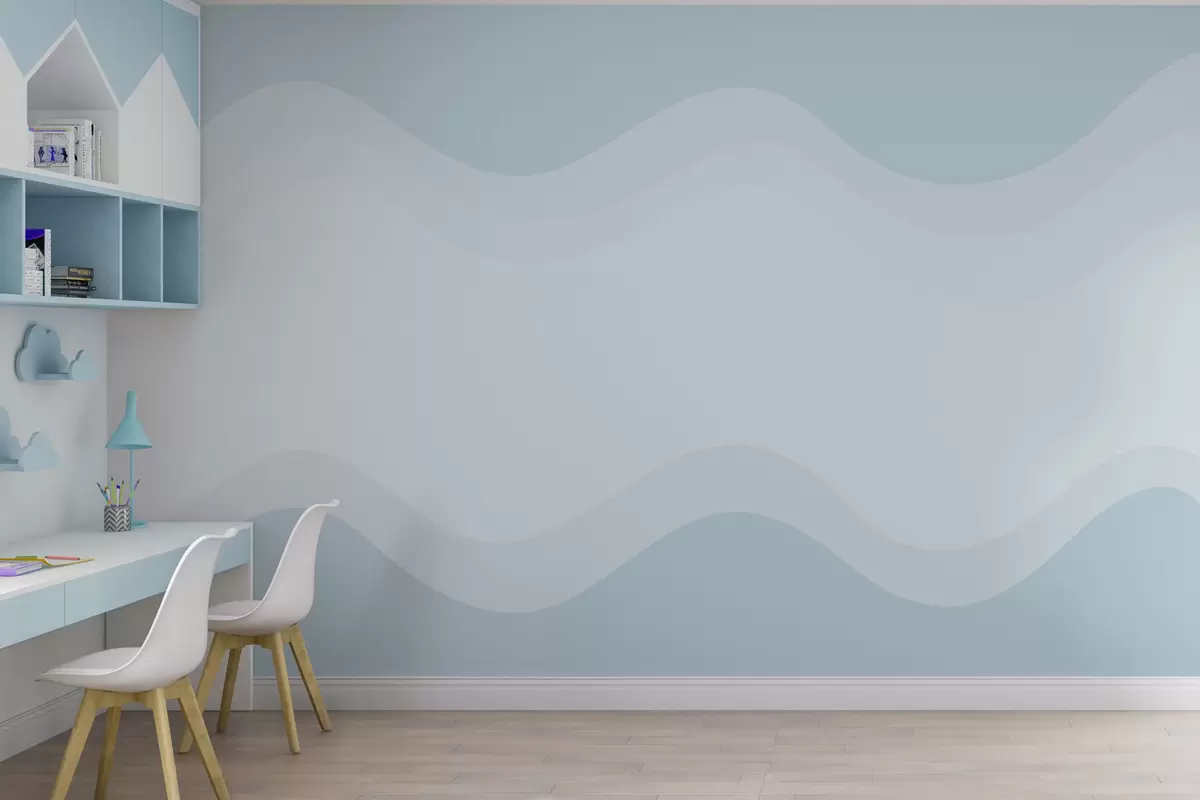 Τοιχογραφίες Αφηρημένα κύματα σε γαλάζια παλέτα Nr. w05132v2