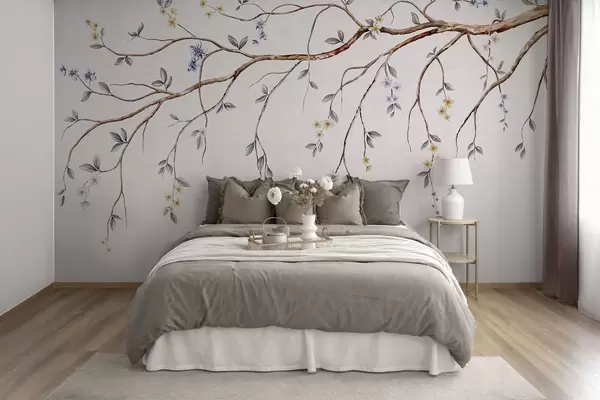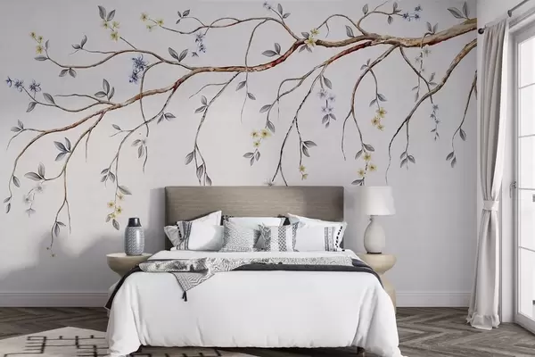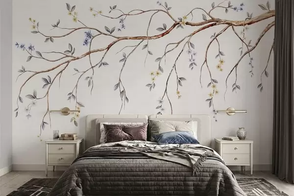 Τοιχογραφίες Λεπτά κλαδιά με μικρά λουλούδια σε ανοιχτόχρωμο φόντο Nr. w05145
