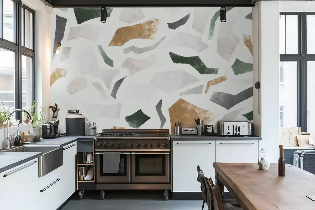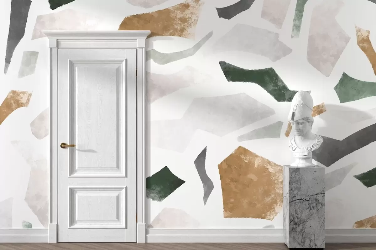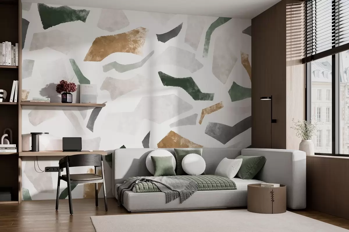 Τοιχογραφίες Αφηρημένα κομμάτια με υφή σε αποχρώσεις του πράσινου και του μπεζ Nr. w05146