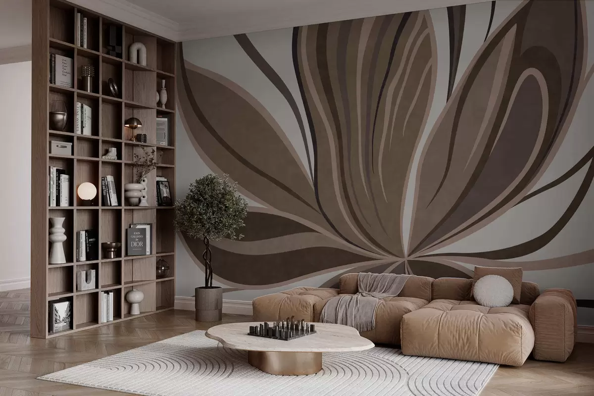 Τοιχογραφίες Στυλιζαρισμένο λουλούδι με κυματιστές γραμμές σε καφέ αποχρώσεις Nr. w05147