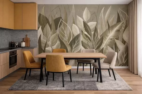 Τοιχογραφίες Αφηρημένα φύλλα σε μπεζ και πράσινες αποχρώσεις Nr. w05148