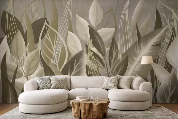 Τοιχογραφίες Αφηρημένα φύλλα σε μπεζ και πράσινες αποχρώσεις Nr. w05148