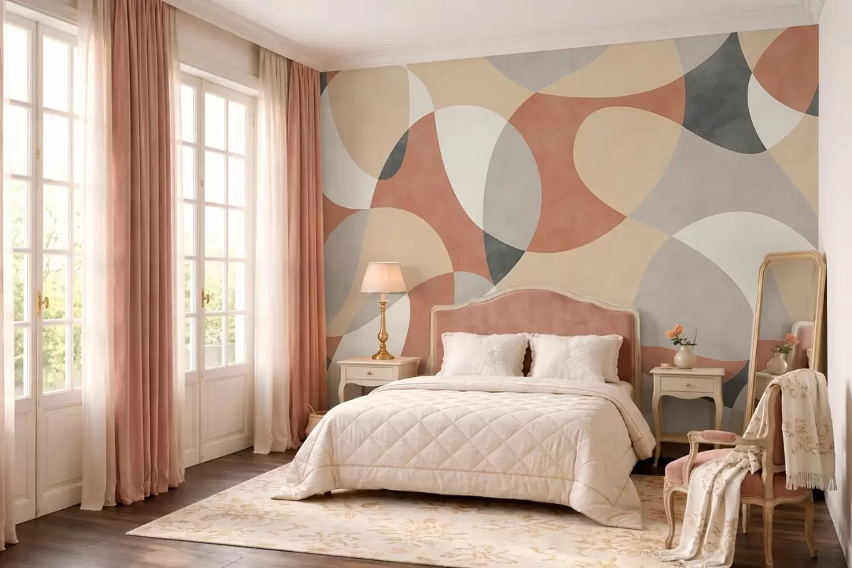 Τοιχογραφίες Αφηρημένο μοτίβο με στρογγυλεμένες γραμμές σε ζεστούς χρωματικούς τόνους Nr. w05149v1