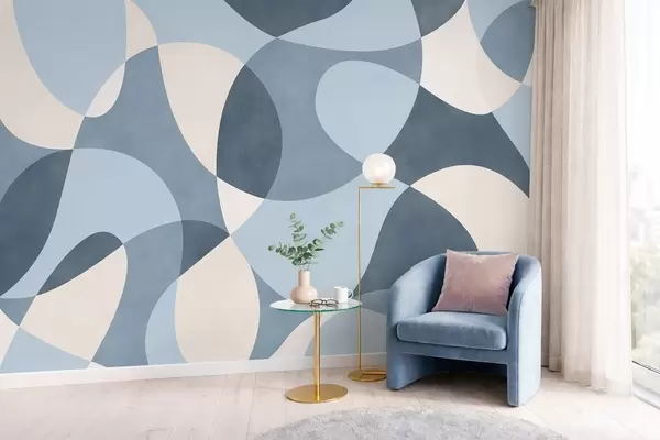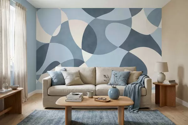 Τοιχογραφίες Αφηρημένο μοτίβο με στρογγυλεμένες γραμμές σε αποχρώσεις του μπλε Nr. w05149v2