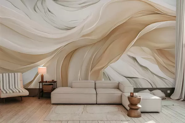 Τοιχογραφίες Ροή από μπεζ υφάσματα Nr. w05152