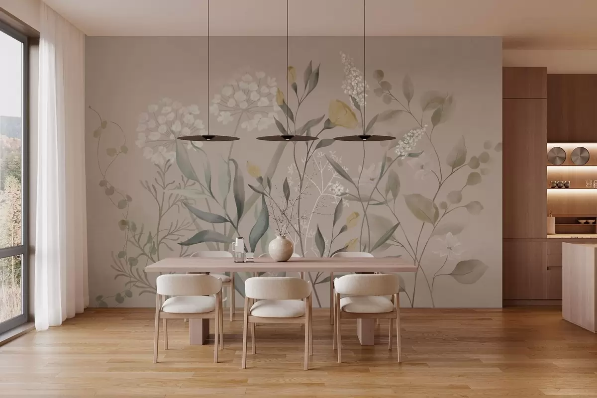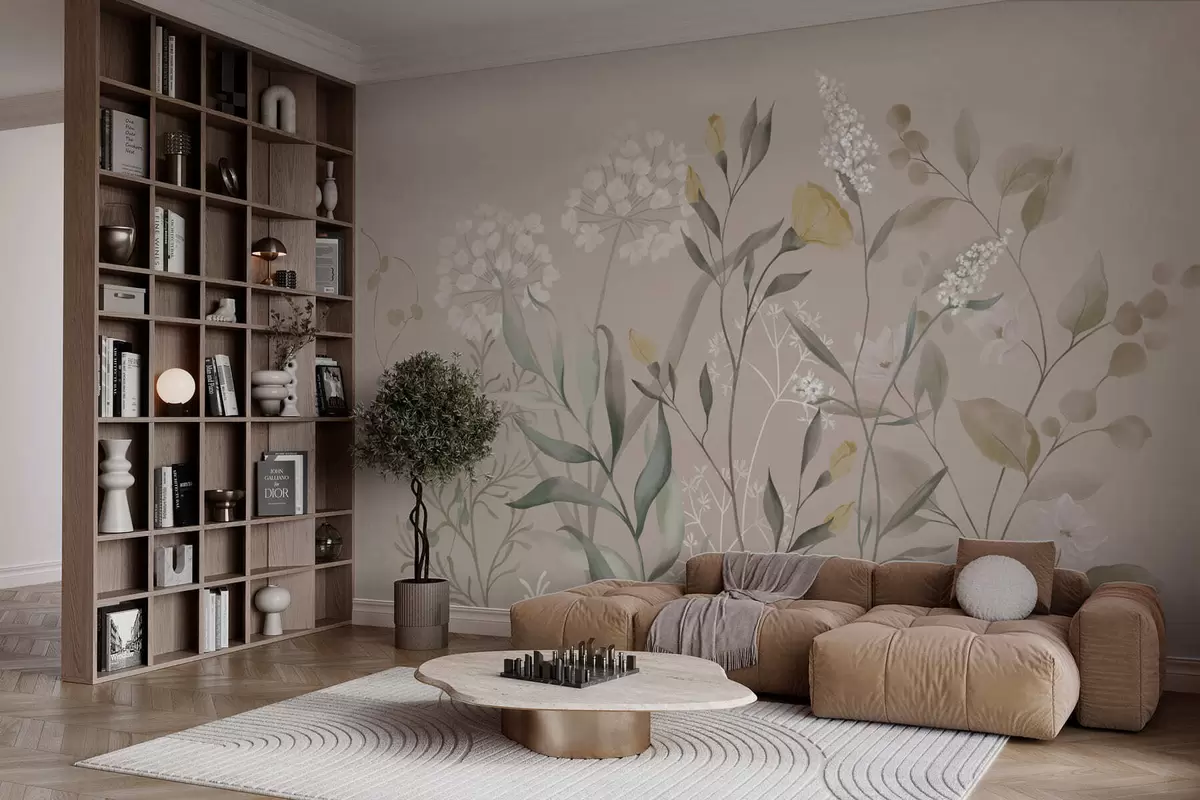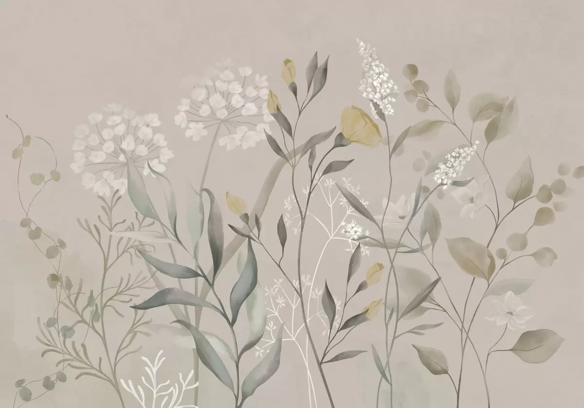 Τοιχογραφίες Βοτανική σύνθεση σε ζεστούς μπεζ τόνους Nr. w05154v2