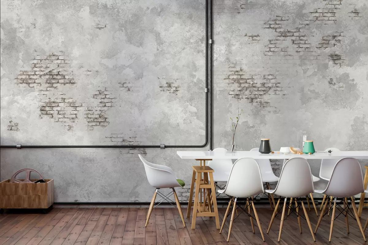 Τοιχογραφίες Υφή σοβά σε στυλ γκράντζ με εμφανή κομμάτια τούβλου Nr. w05161