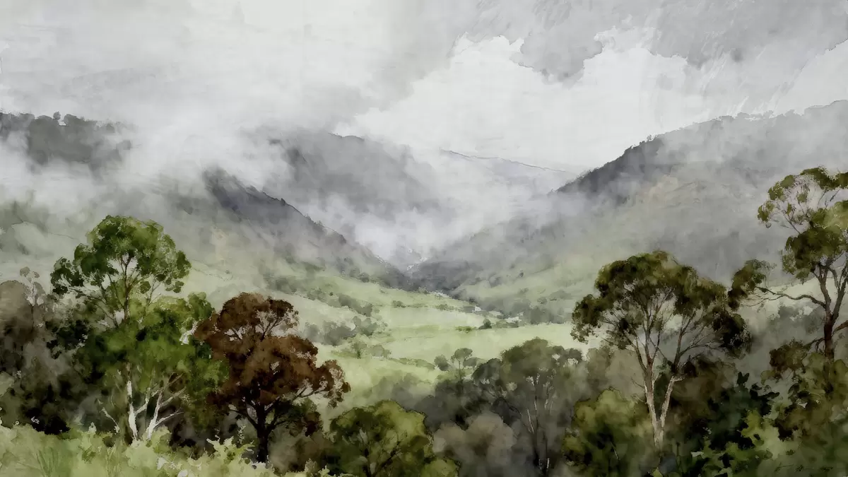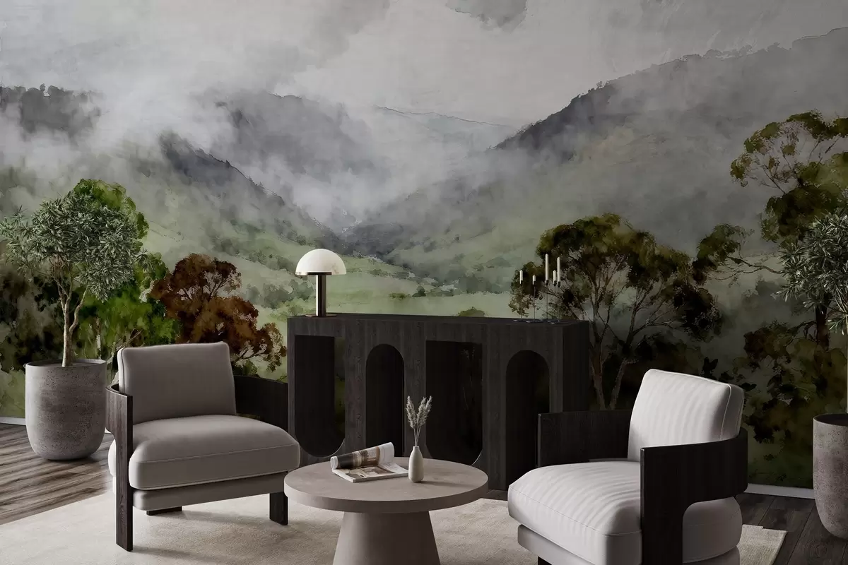 Τοιχογραφίες Ζωγραφισμένο τοπίο στην ομίχλη Nr. w05185