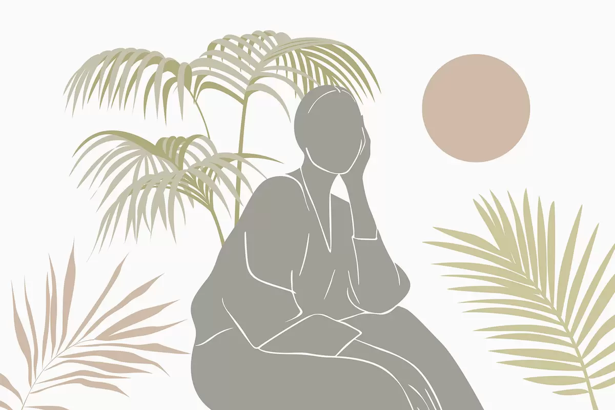 Τοιχογραφίες Σιλουέτα γυναίκας και φύλλα φοίνικα Nr. w05190