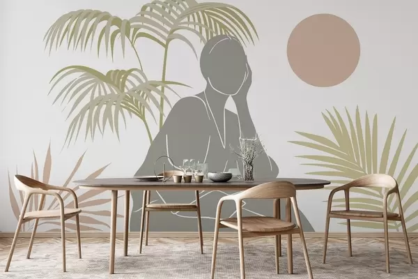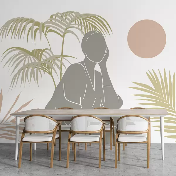 Τοιχογραφίες Σιλουέτα γυναίκας και φύλλα φοίνικα Nr. w05190