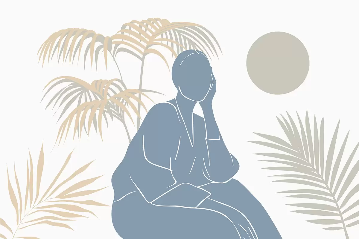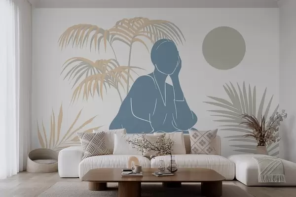 Τοιχογραφίες Σιλουέτα γυναίκας και φύλλα φοίνικα Nr. w05190v1