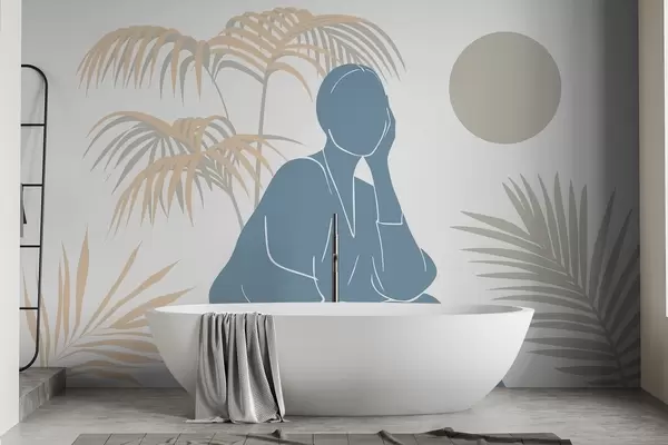 Τοιχογραφίες Σιλουέτα γυναίκας και φύλλα φοίνικα Nr. w05190v1