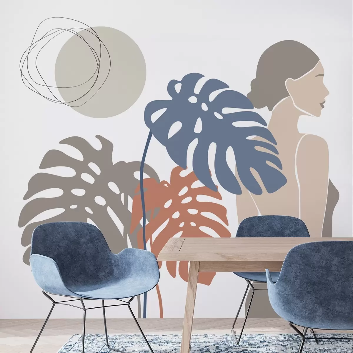 Τοιχογραφίες Σιλουέτα γυναίκας κοντά σε τροπικά φύλλα Nr. w05192