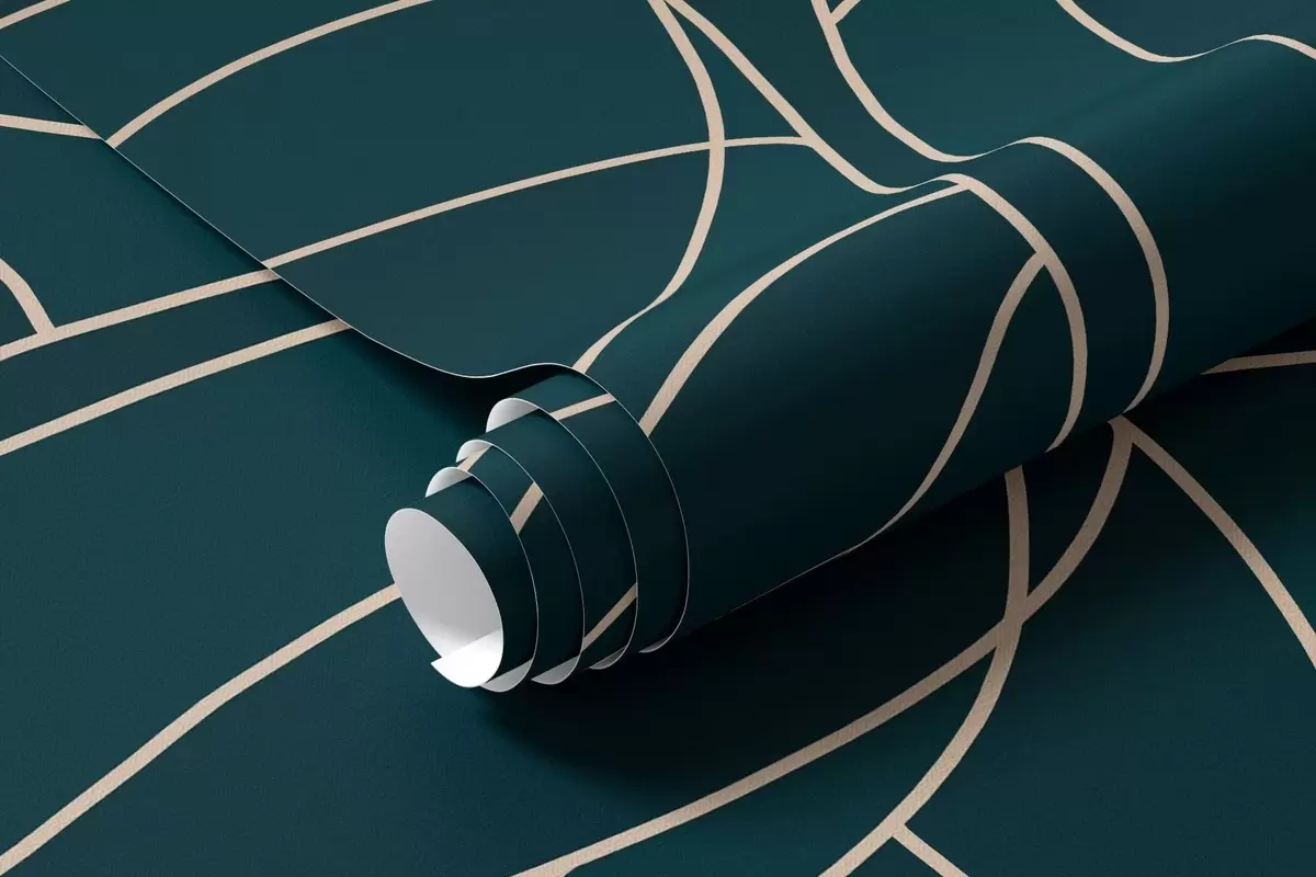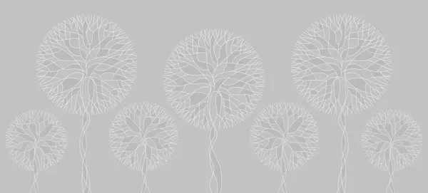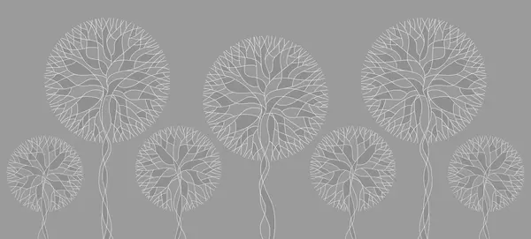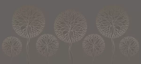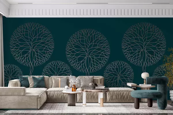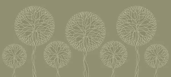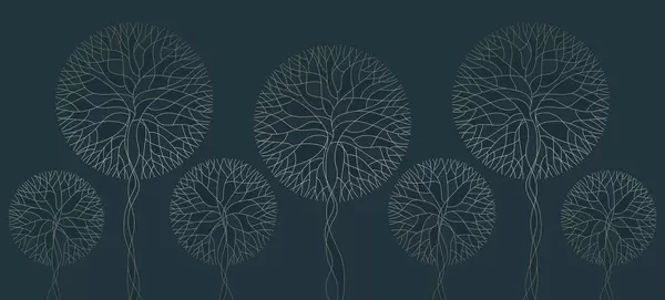 Τοιχογραφίες Φανταστικά γραμμικά δέντρα με πλούσιες κορώνες σε κομψούς σκούρους σμαραγδένιους τόνους Nr. w05213