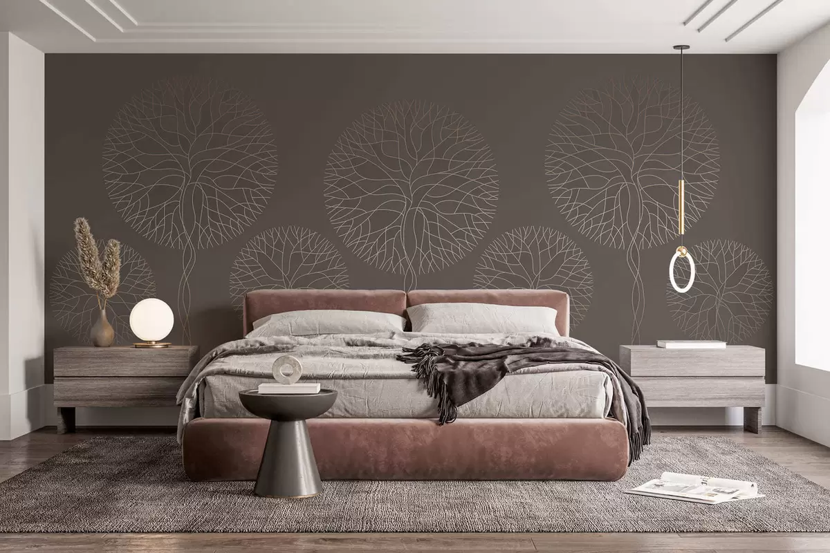 Τοιχογραφίες Φανταστικά γραμμικά δέντρα με πλούσιες κορώνες σε κομψές αποχρώσεις μόκα Nr. w05213v1