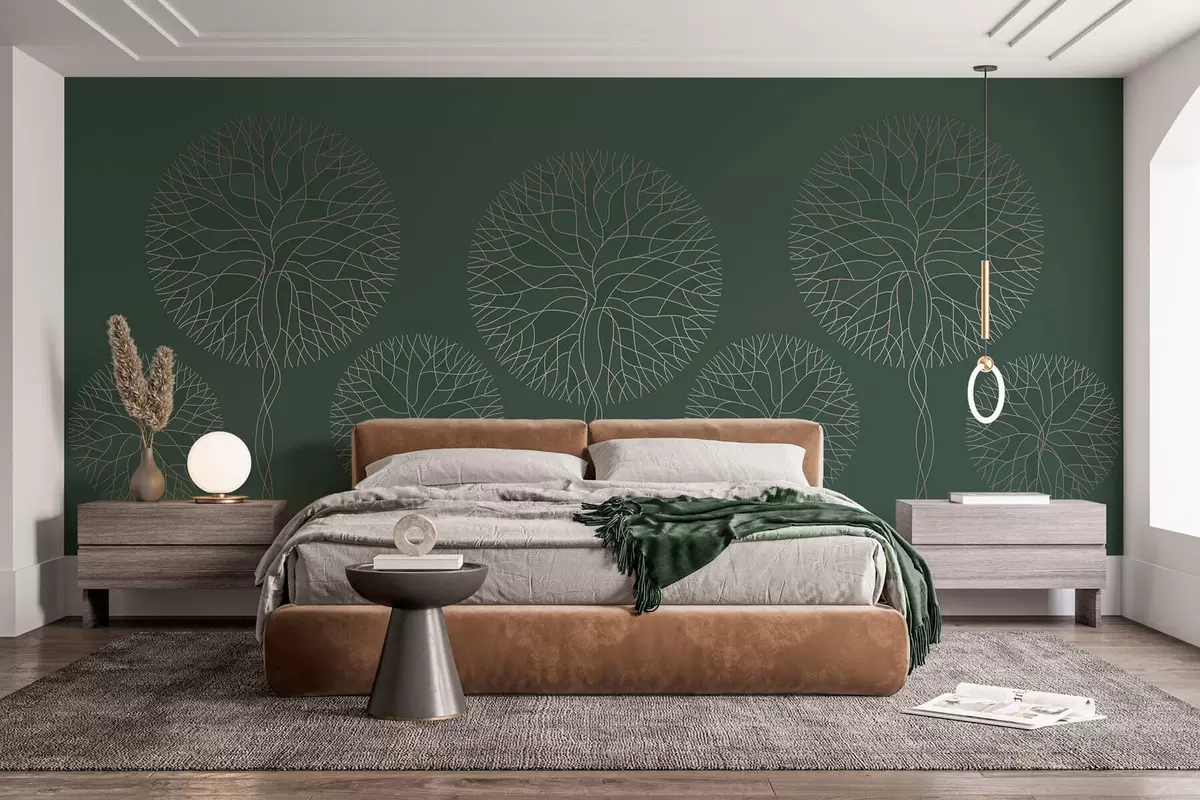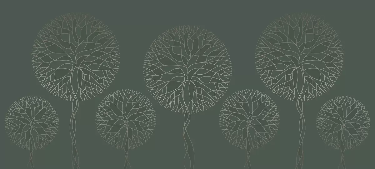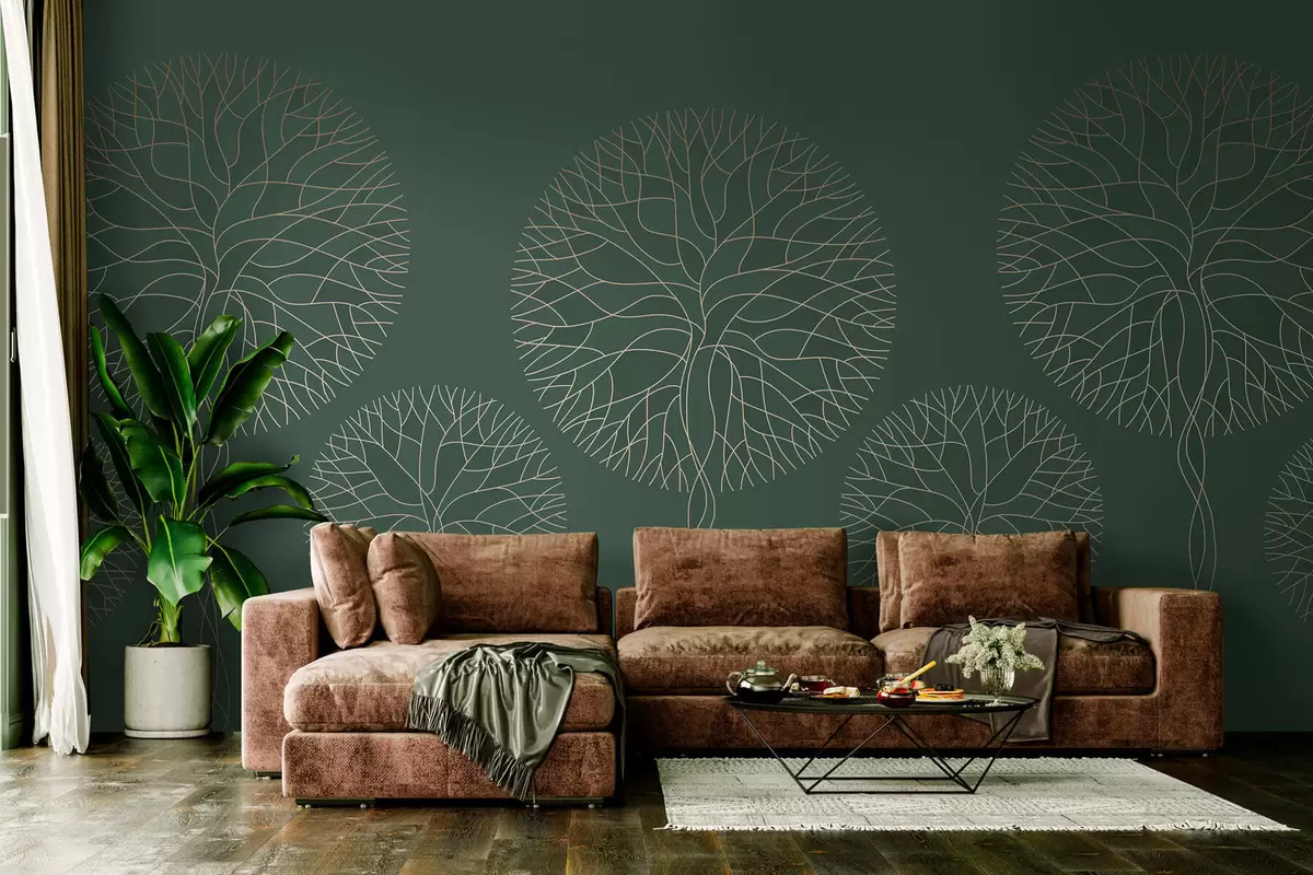 Τοιχογραφίες Φανταστικά γραμμικά δέντρα με πλούσιες κορώνες σε κομψούς σκούρους πράσινους τόνους Nr. w05213v2
