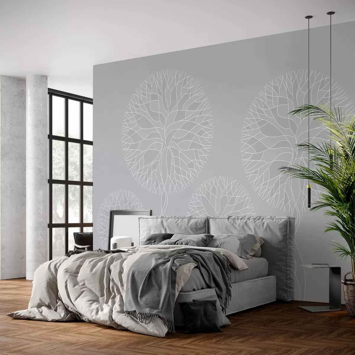 Τοιχογραφίες Φανταστικά γραμμικά δέντρα με πλούσιες κορώνες σε ανοιχτούς γκρι τόνους Nr. w05213v4