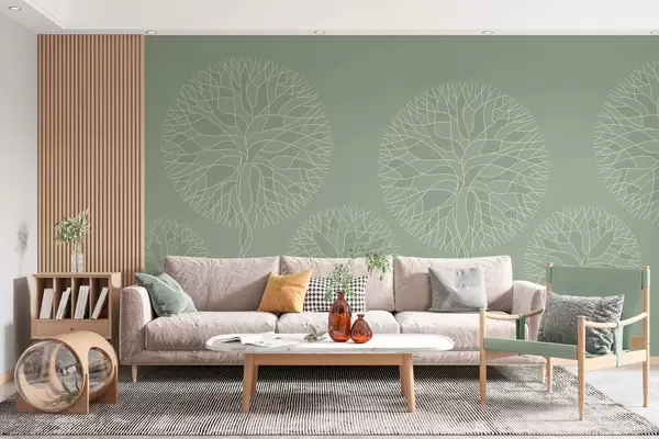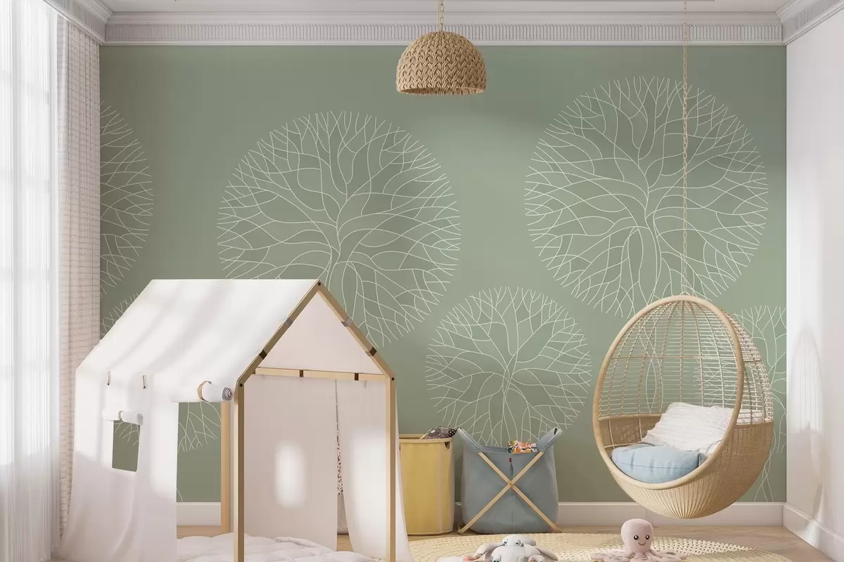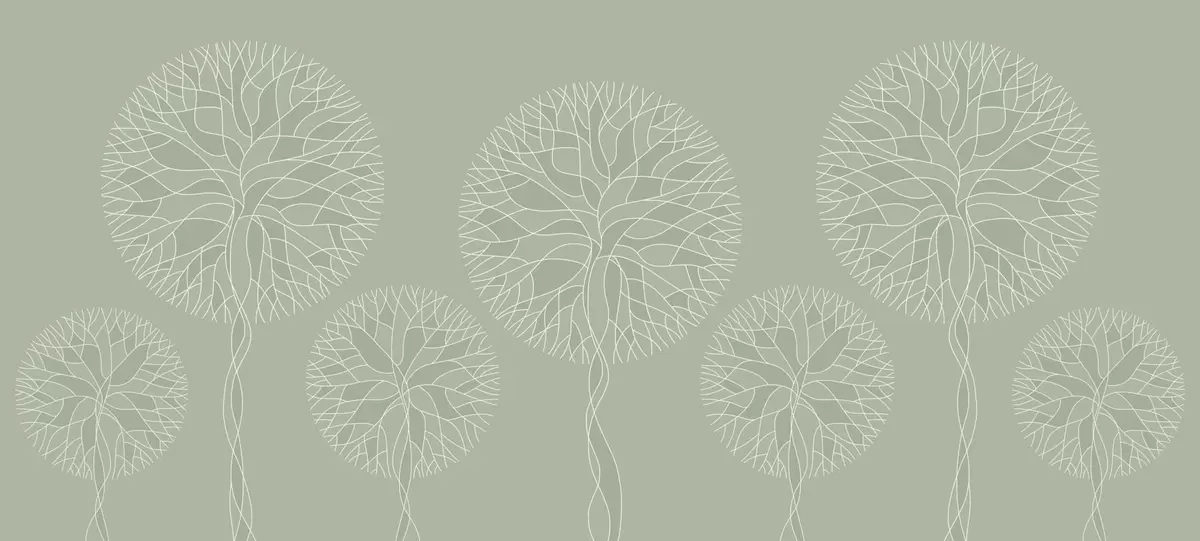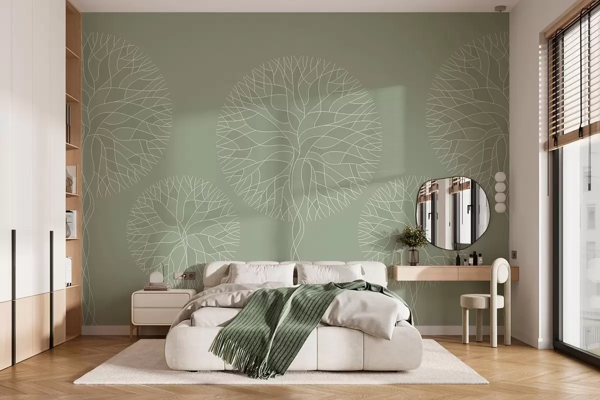 Τοιχογραφίες Φανταστικά γραμμικά δέντρα με πλούσιες κορώνες σε ανοιχτούς πράσινους τόνους Nr. w05213v6