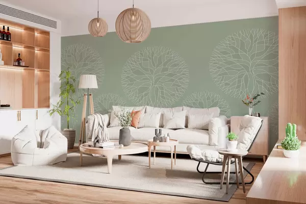 Τοιχογραφίες Φανταστικά γραμμικά δέντρα με πλούσιες κορώνες σε ανοιχτούς πράσινους τόνους Nr. w05213v6