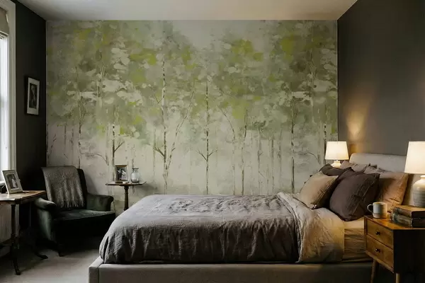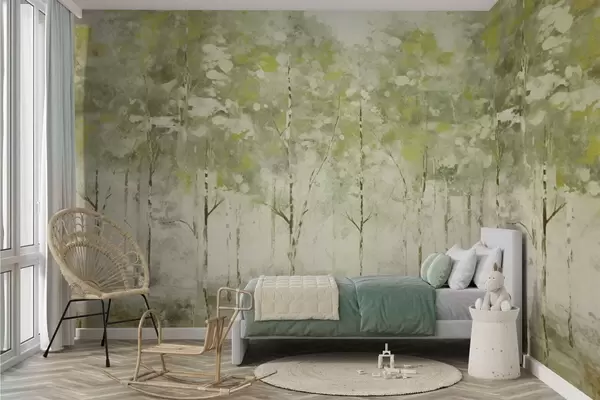 Τοιχογραφίες Στυλιζαρισμένο δάσος με λεπτούς δένδρους σε πράσινους τόνους Nr. w05221v1