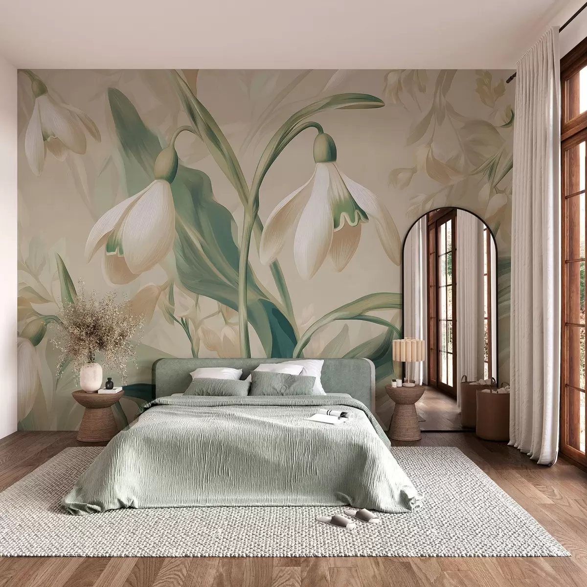 τοιχογραφίες ανθισμένα χιονάνθη σε μπεζ φόντο w05234
