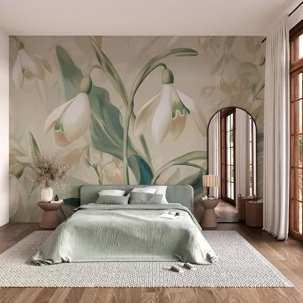 Τοιχογραφίες ανθισμένα χιονάνθη σε μπεζ φόντο Nr. w05234