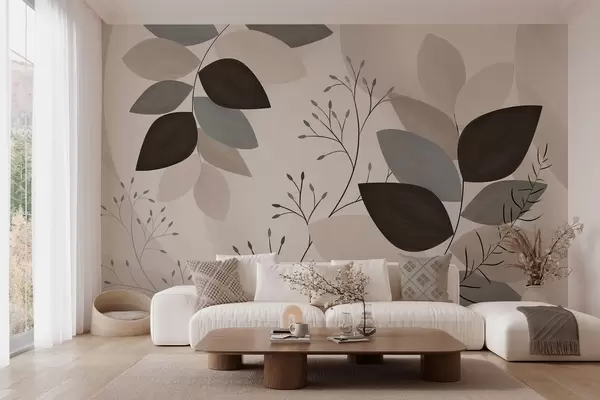 Τοιχογραφίες φύλλα και χόρτα σε αποχρώσεις του μπεζ, του γκρι και του καφέ Nr. w05237