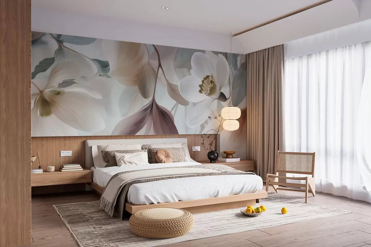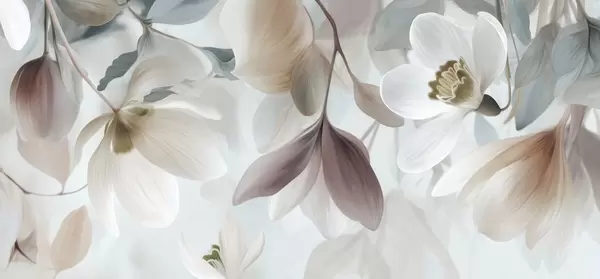 Τοιχογραφίες μια λεπτή σύνθεση από λουλούδια και φύλλα σε παστέλ αποχρώσεις Nr. w05240