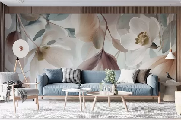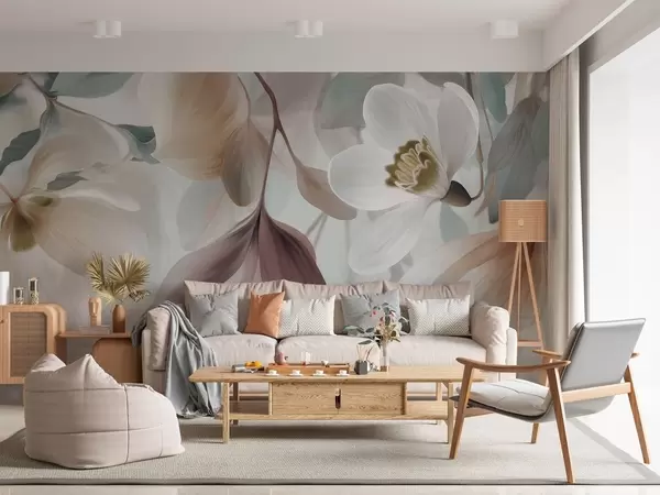 Τοιχογραφίες μια λεπτή σύνθεση από λουλούδια και φύλλα σε παστέλ αποχρώσεις Nr. w05240
