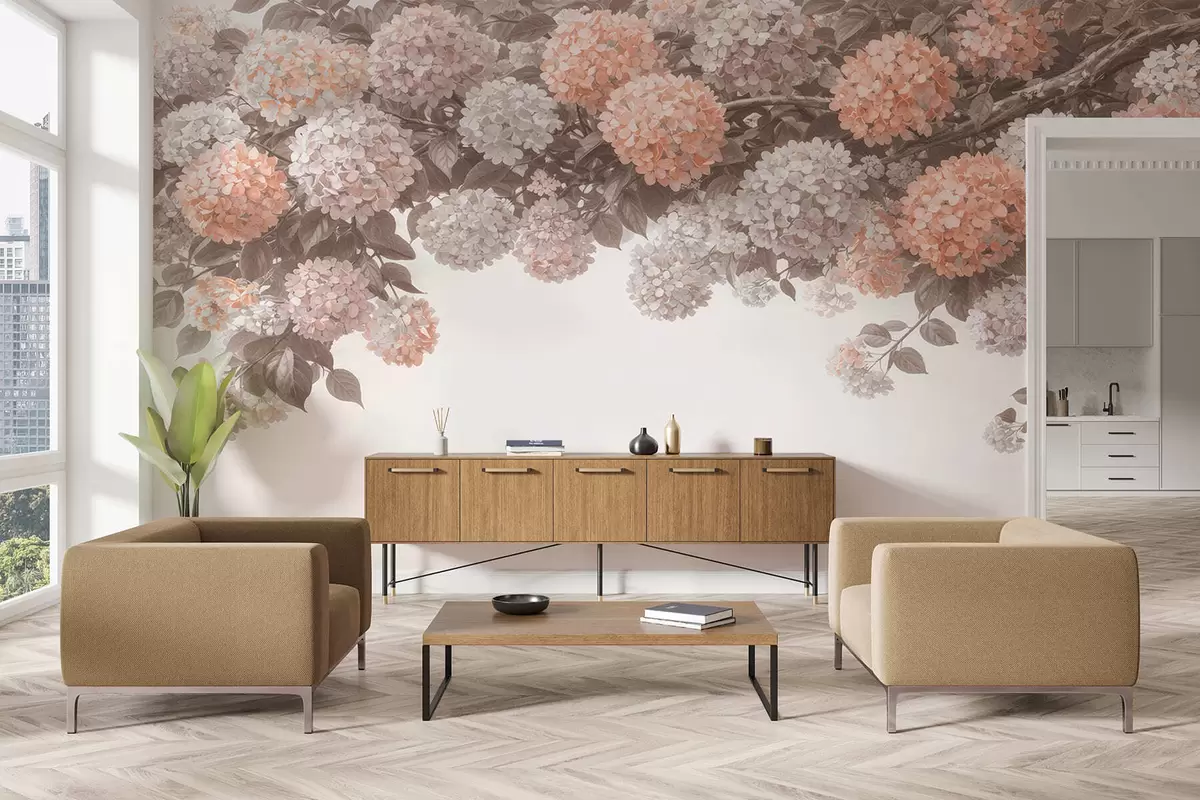 Τοιχογραφίες Ζωγραφισμένες ορτανσίες κρέμονται Nr. w05250v1
