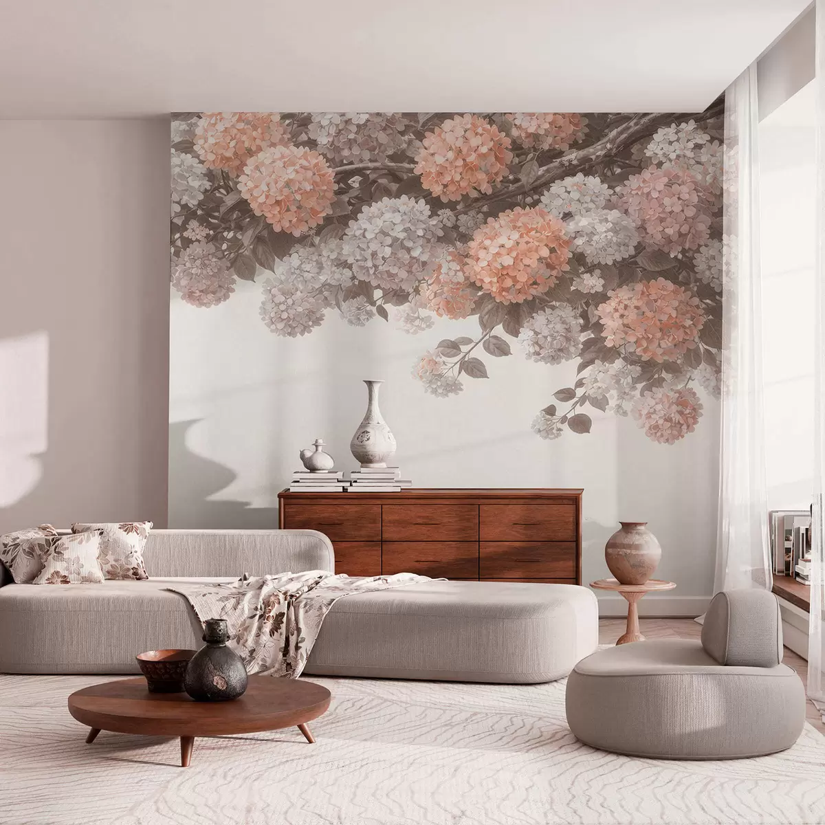Τοιχογραφίες Ζωγραφισμένες ορτανσίες κρέμονται Nr. w05250v1