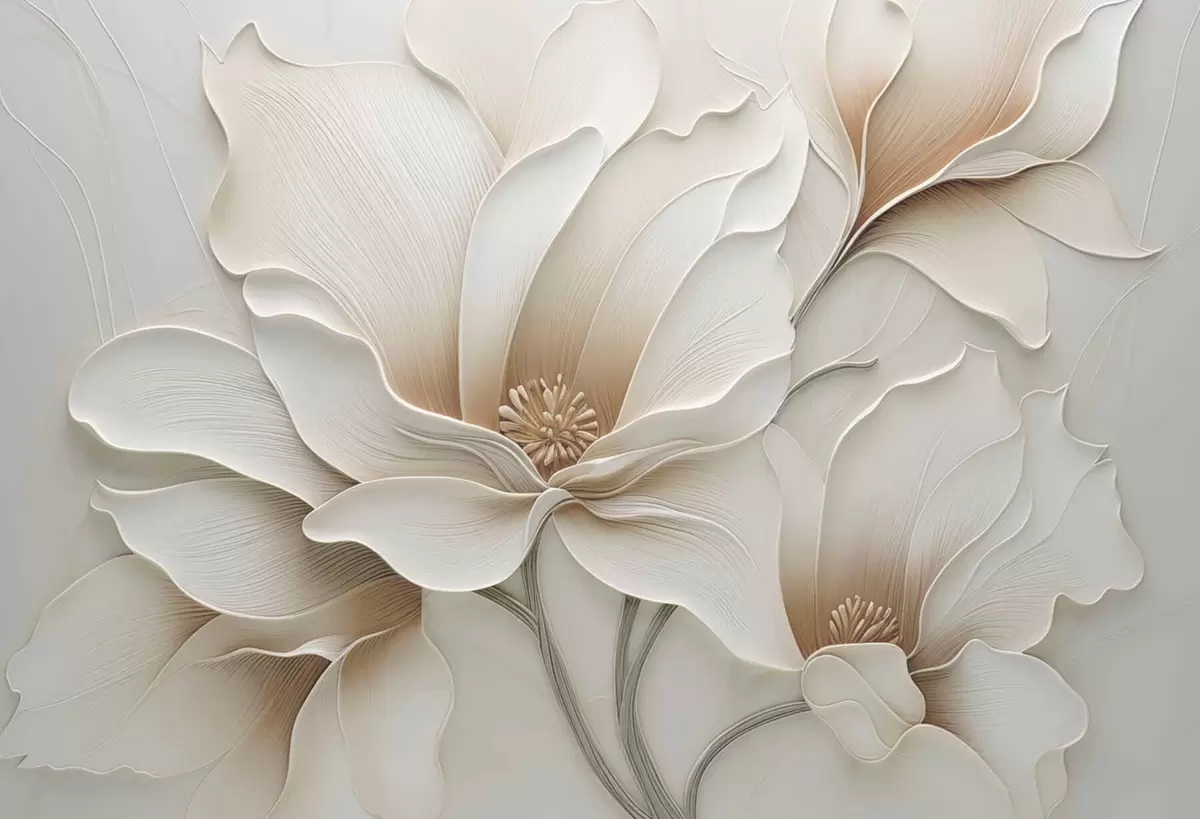 Τοιχογραφίες Ανάγλυφο μπεζ λουλούδι σε κοντινό πλάνο Nr. w05269