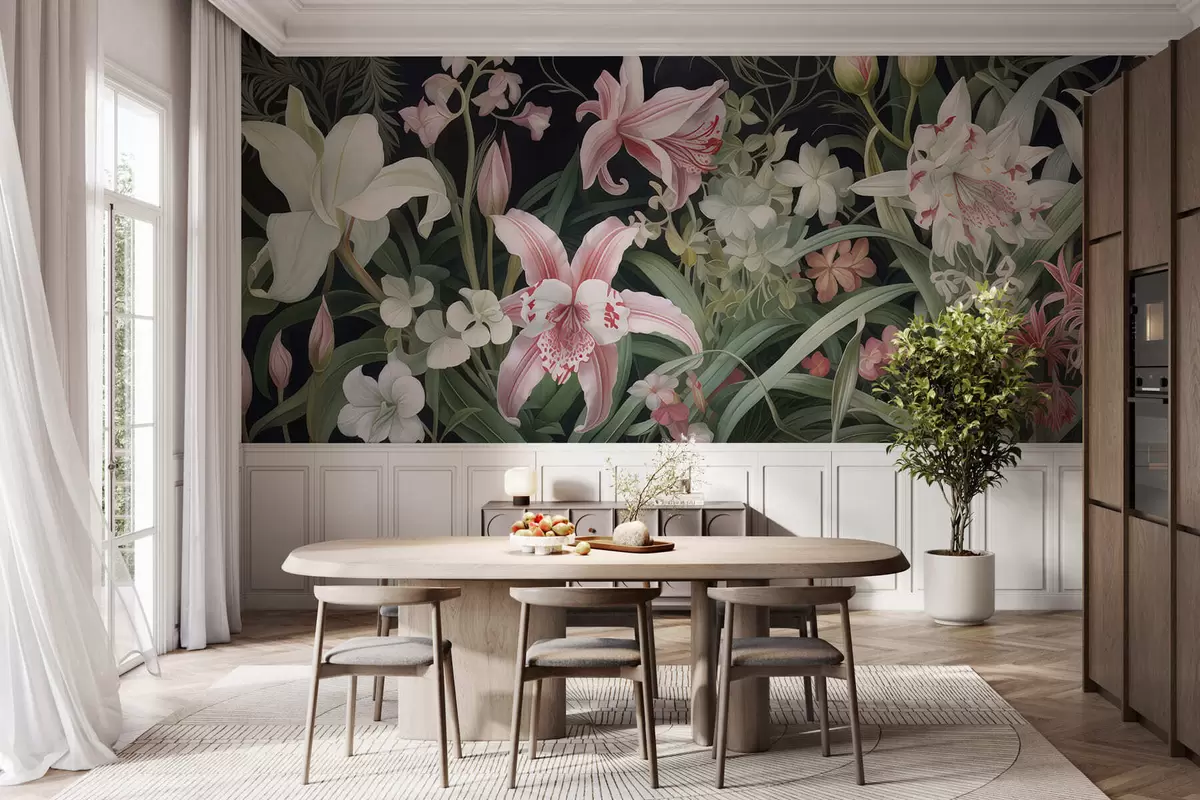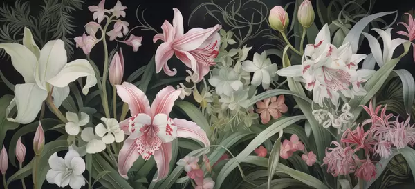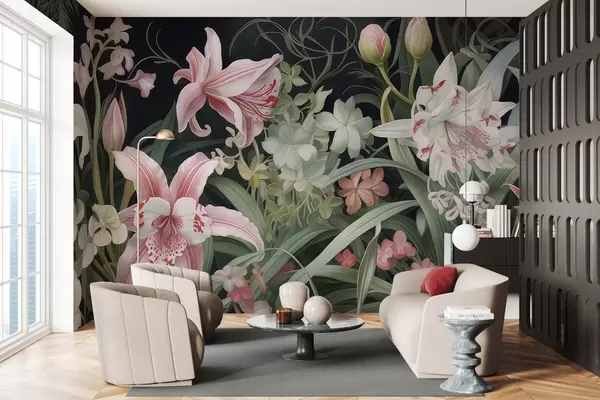 Τοιχογραφίες Φανταστικά λουλούδια σε σκούρο φόντο Nr. w05278