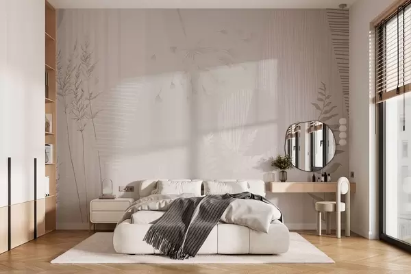 Τοιχογραφίες Μινιμαλιστική σύνθεση με χόρτα και σχήματα Nr. w05318