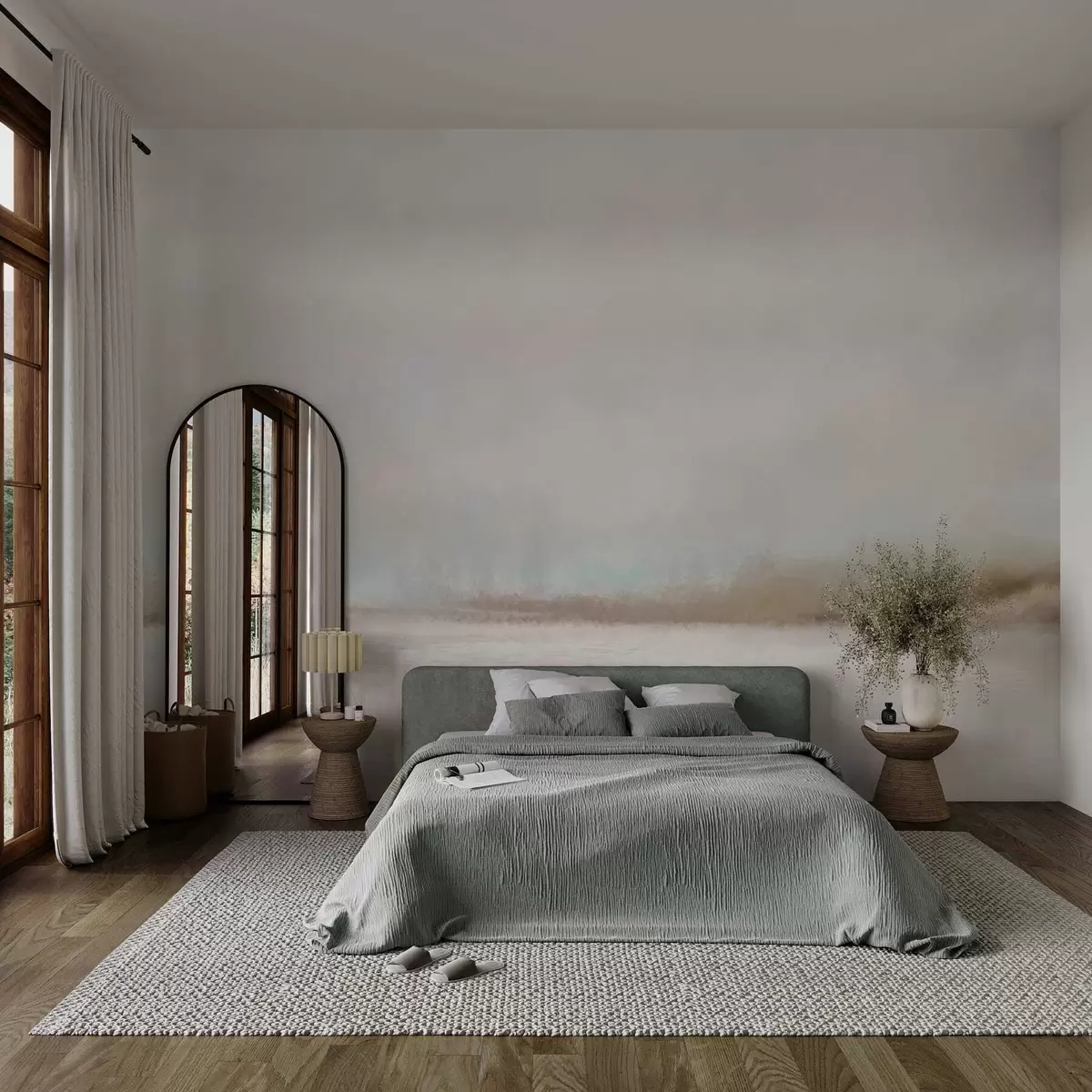 Τοιχογραφίες Ομιχλώδες τοπίο με λίμνη και δάσος Nr. w05319
