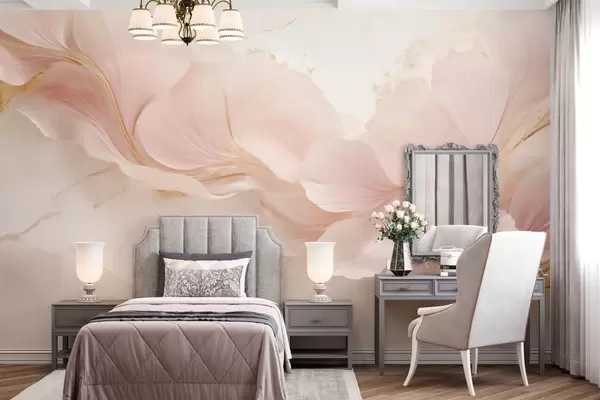 Τοιχογραφίες Απαλά ροζ λουλούδια σε ανοιχτόχρωμο φόντο Nr. w05357
