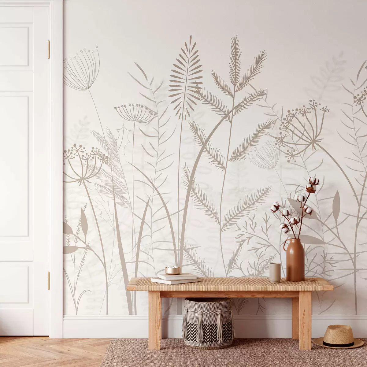 Τοιχογραφίες λεπτοδουλεμένα, ζωγραφισμένα στο χέρι αγριοχόρτα και λουλούδια πάνω σε λευκό φόντο Nr. w05383v2