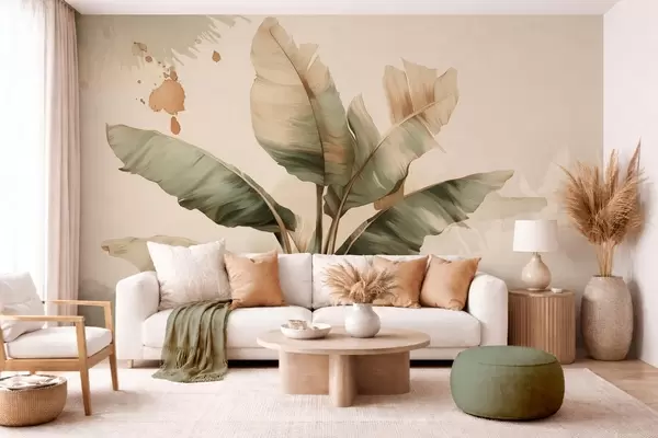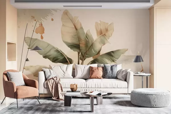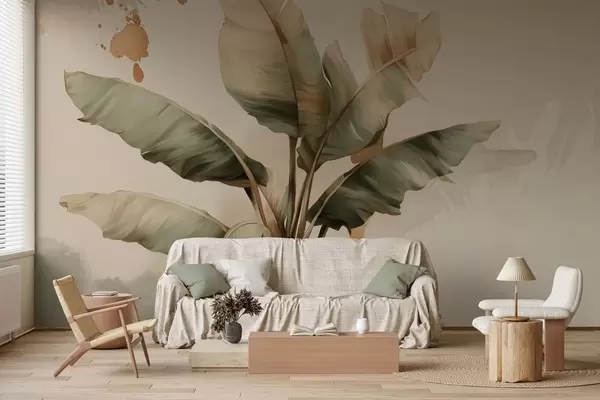 Τοιχογραφίες ένα μεγάλο, γραφικό σύμπλεγμα από φύλλα μπανάνας με πινελιές ρετρό στυλ Nr. w05384