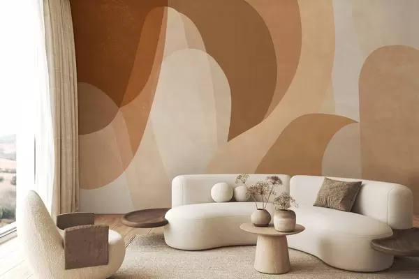Τοιχογραφίες αφηρημένες καμπύλες σε αποχρώσεις του καφέ, του μπεζ και του καστανό Nr. w05387