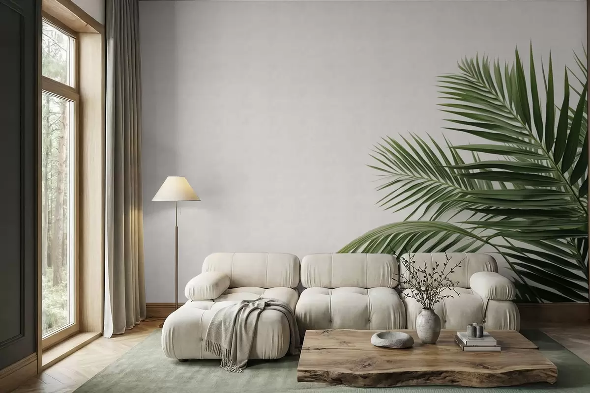 Τοιχογραφίες Πράσινα φύλλα φοίνικα σε ανοιχτόχρωμο φόντο Nr. w05391
