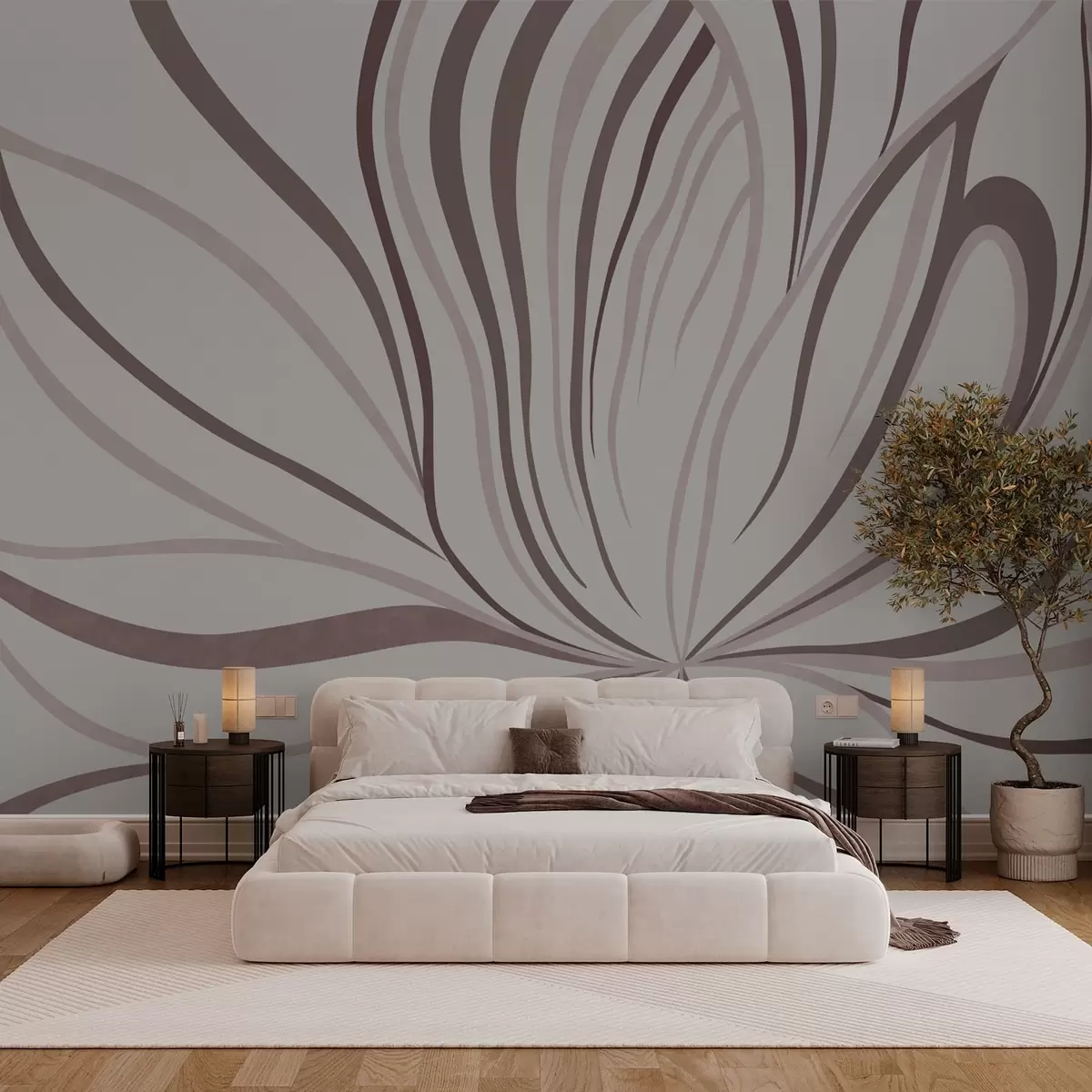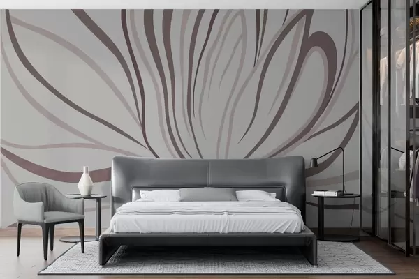 Τοιχογραφίες Στυλιζαρισμένο λουλούδι με απαλές γραμμές σε ροζ και μπεζ αποχρώσεις Nr. w05392v1