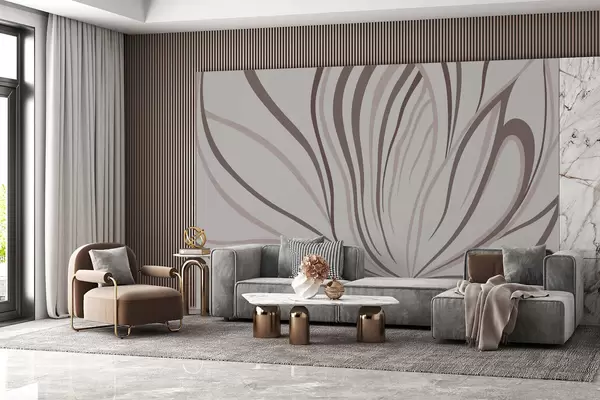 Τοιχογραφίες Στυλιζαρισμένο λουλούδι με απαλές γραμμές σε ροζ και μπεζ αποχρώσεις Nr. w05392v1