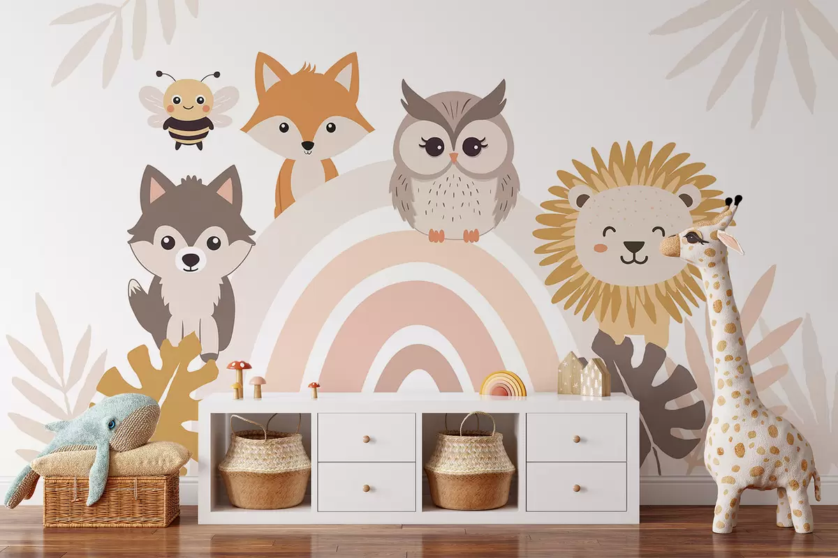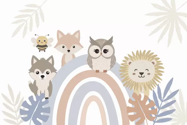 Τοιχογραφίες Χαριτωμένα ζώα κοντά στο ουράνιο τόξο Nr. w05399