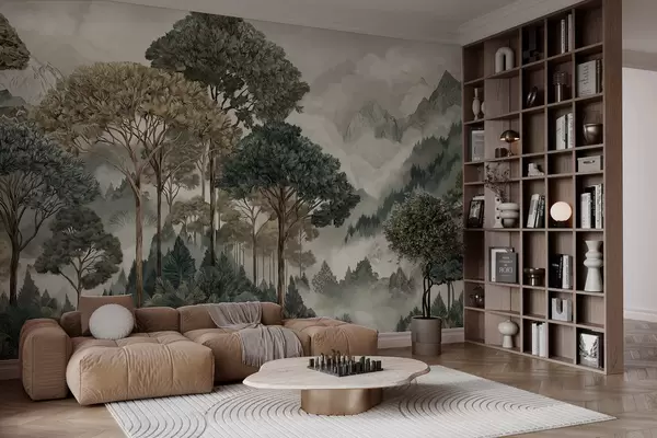 Τοιχογραφίες Ορεινό τοπίο με δάσος σε απαλές αποχρώσεις Nr. w05410v1